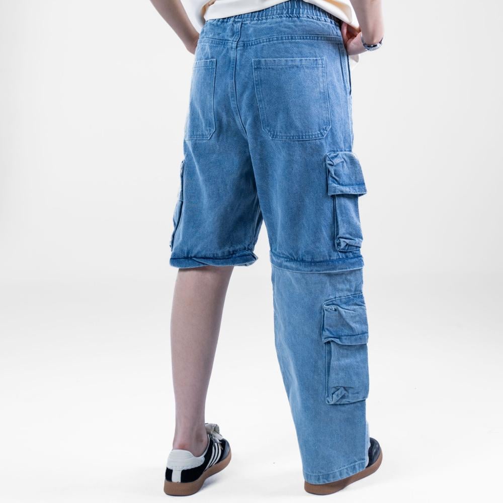 بنطلون جينز كارجو اثنين في واحد قابل للبس شورت او بنطلون - ازرق غامق