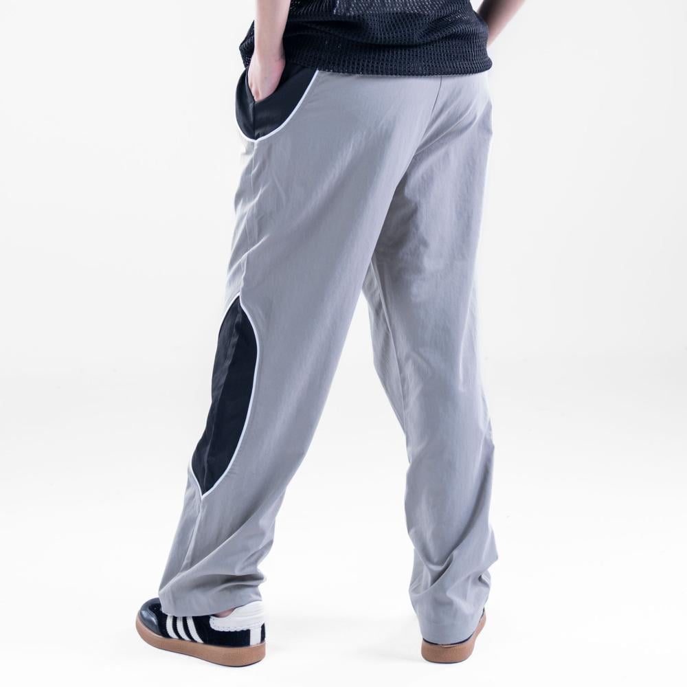 بنطلون باراشوت اوفر سايز بلونين رمادي وأسود بقصة جانبيه - رمادي