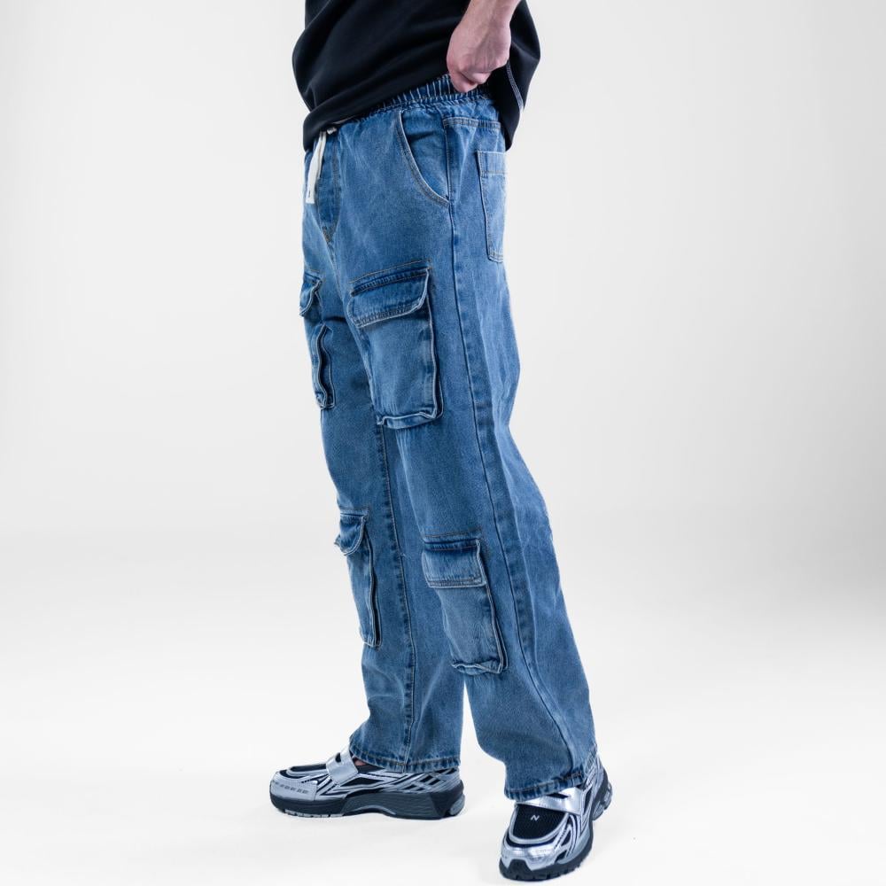 بنطلون جينز كارجو مريح وعملي - ازرق