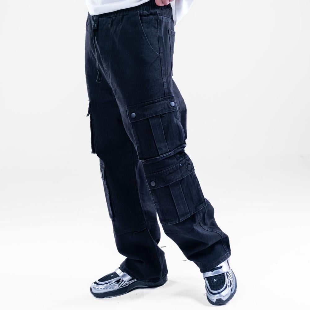 يتميز بنطلون الجينز الكارجو الأسود هذا بتصميم شبابي وعصري يجمع بين الأناقة والعملية. يوفر لك راحة مثالية وحرية في الحركة، مع جيوب جانبية متعددة تمنحك مساحة كافية لتخزين أغراضك الأساسية بأناقة. إنه الخيار الأمثل لإطلالة مميزة ومريحة في كل الأوقات.