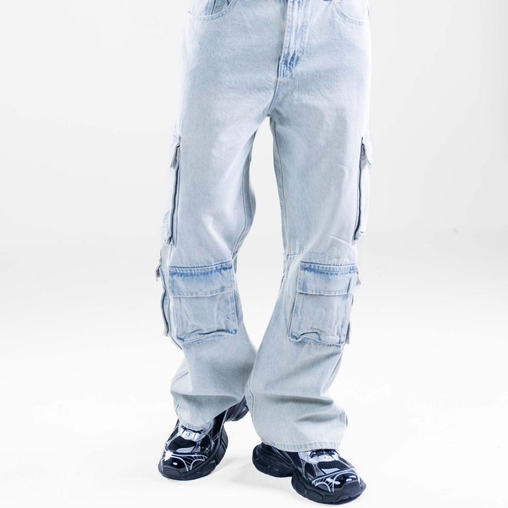 بنطلون كارجو جيوب اماميه وجانبيه أنيق - سماوي