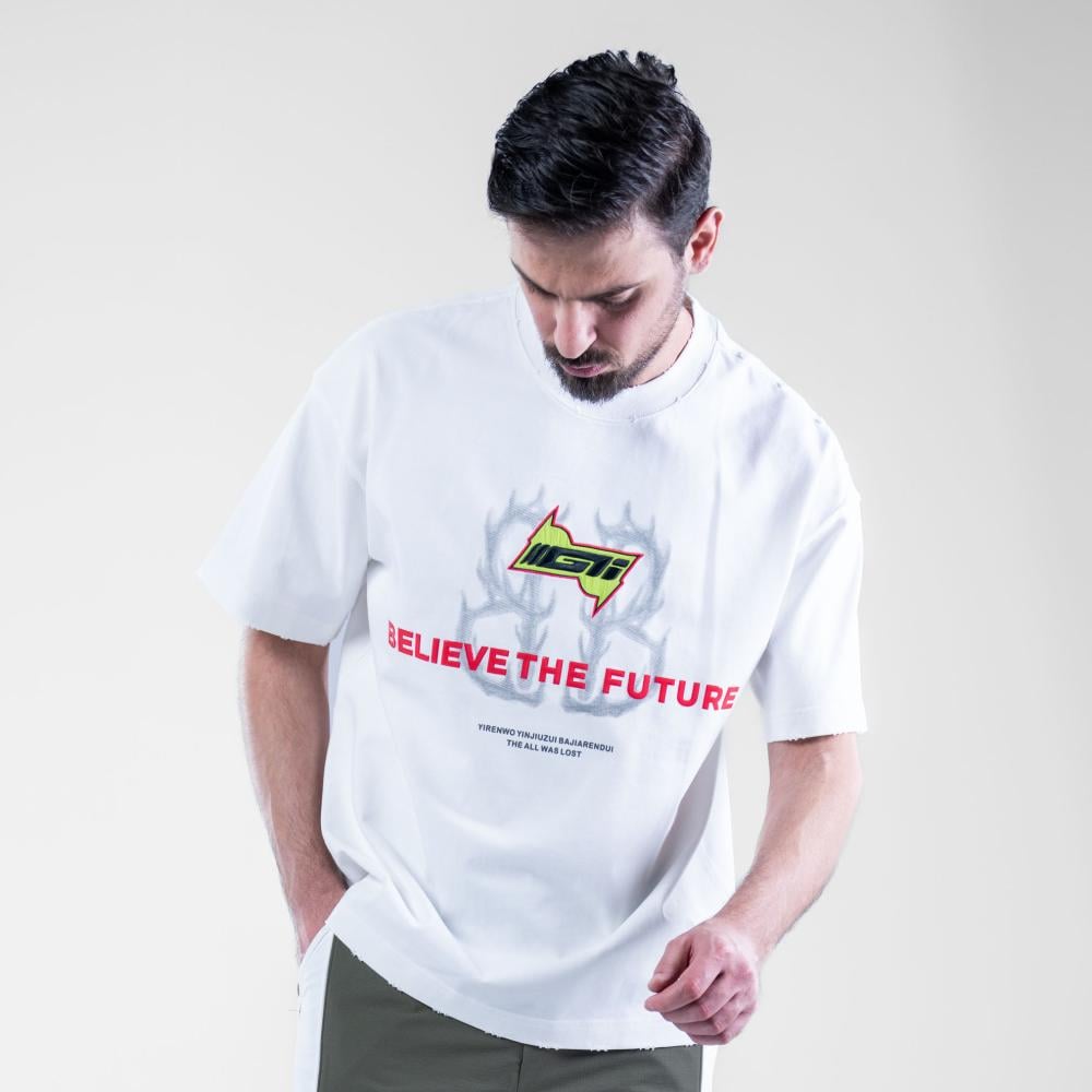 تيشيرت أوفرسايز بطبعه أماميه مميزة - ابيض