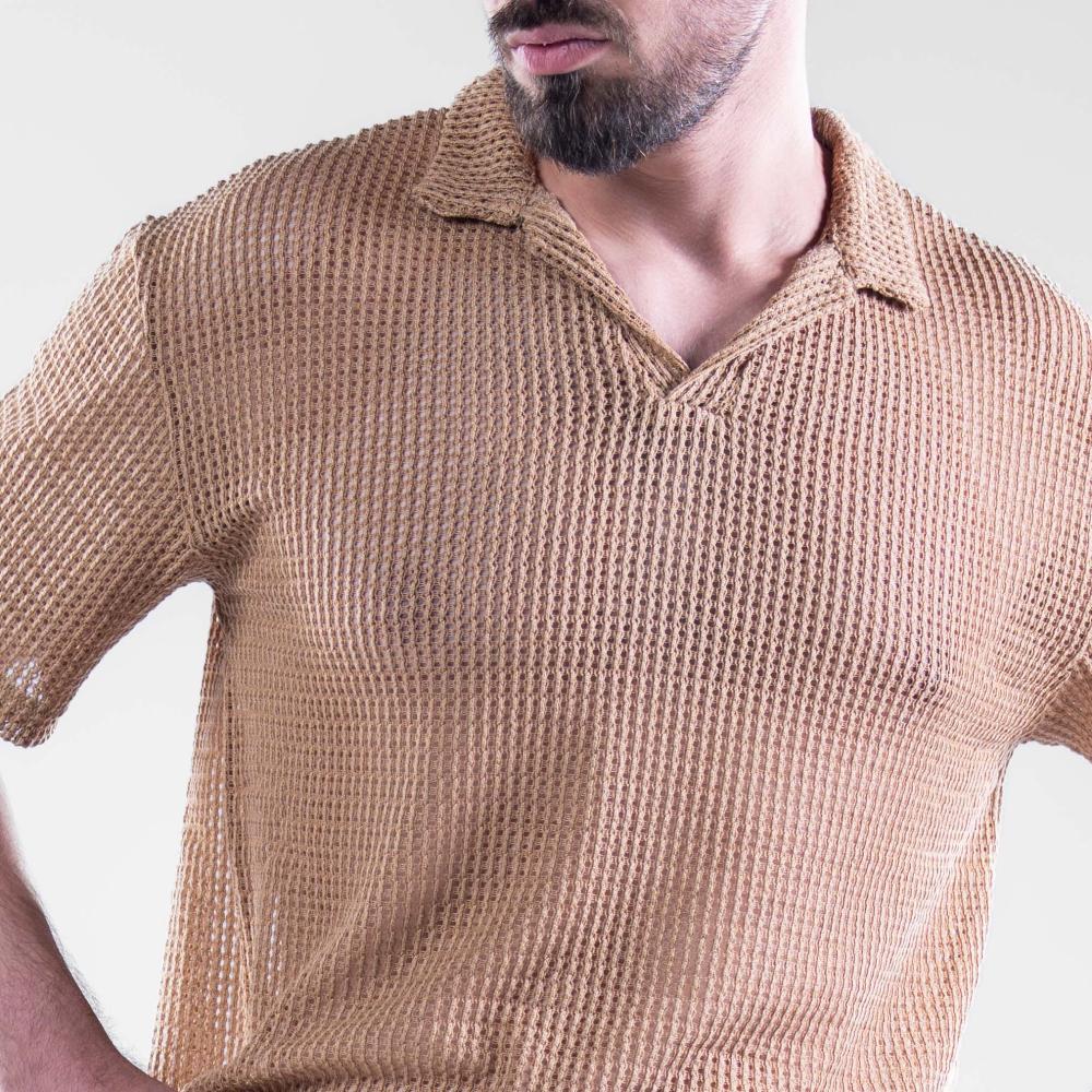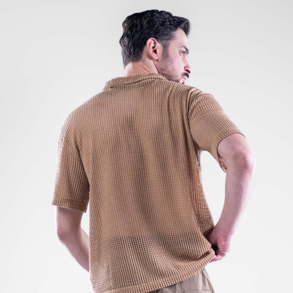 تيشيرت أوفر سايز مخرم بألوان متعدده - بني