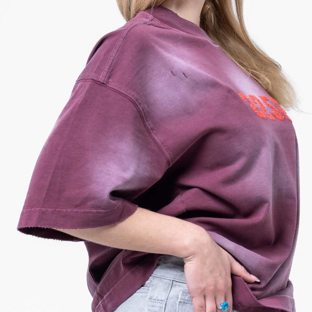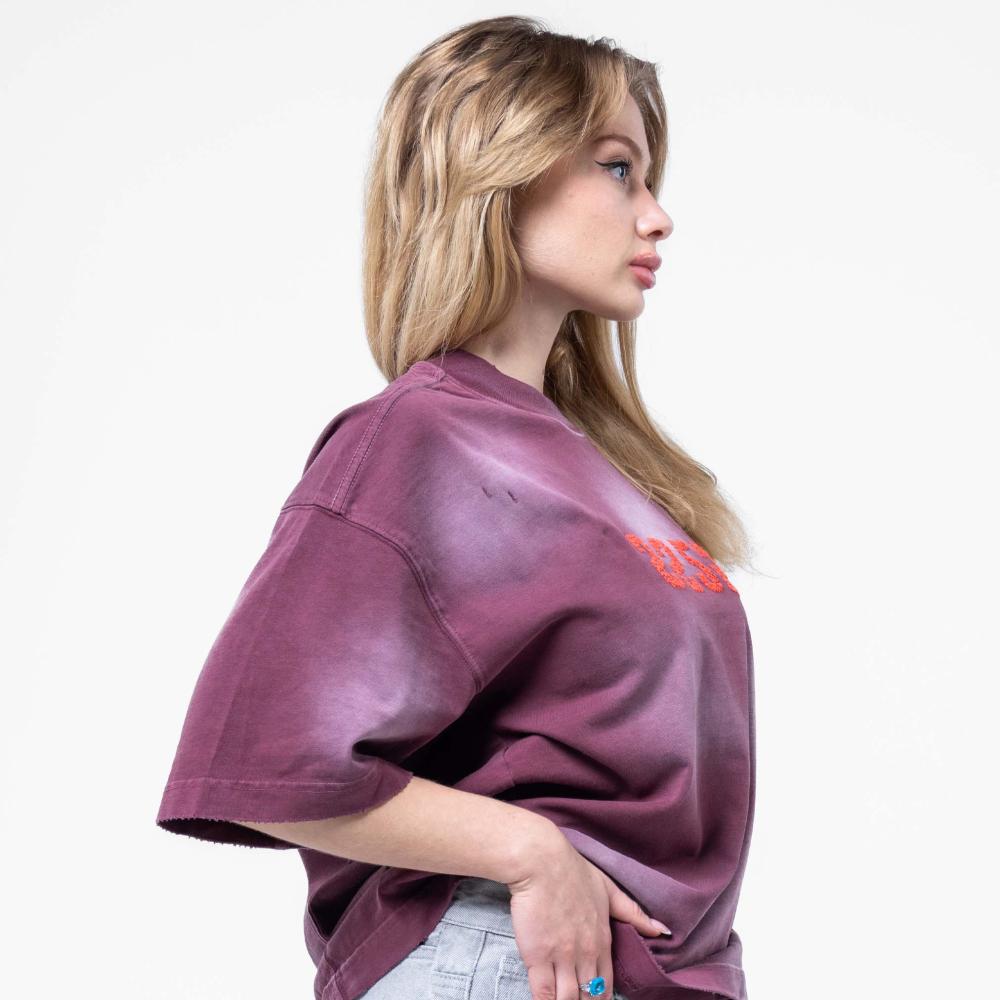 تيشيرت اوفرسايز بكتابه رقمية اماميه بارزة- أحمر غامق