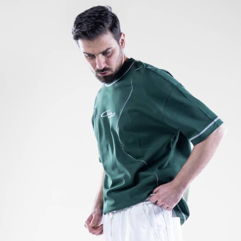 تيشيرت اوفرسايز خامه طبيه كاجوال بتصميم عصري - اخضر
