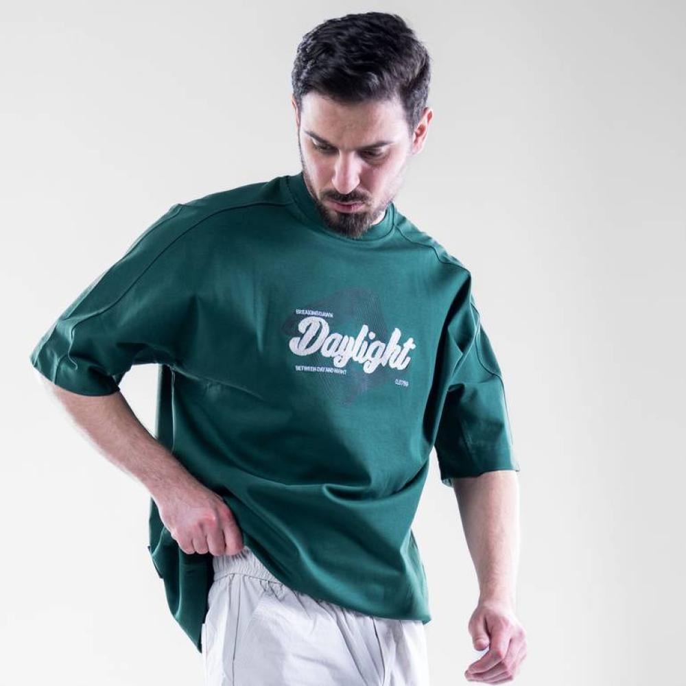 تيشيرت اوفرسايز قطن بطبعة امامية Daylight - اخضر