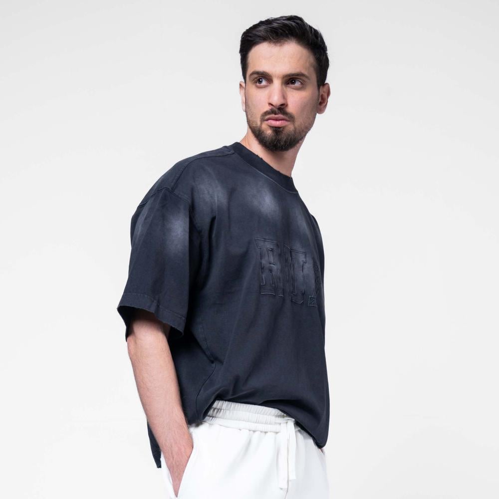 تيشيرت اوفرسايز مموه بكتابة حفر اماميه - أسود