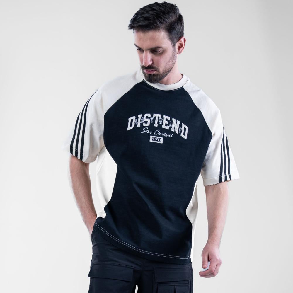 تيشيرت اوفر سايز بكتابه امامية DISTEND رياضى - اسود