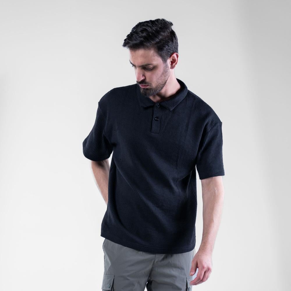 تيشيرت بولو اوفر سايز مخرم بالوان متعدده - اسود