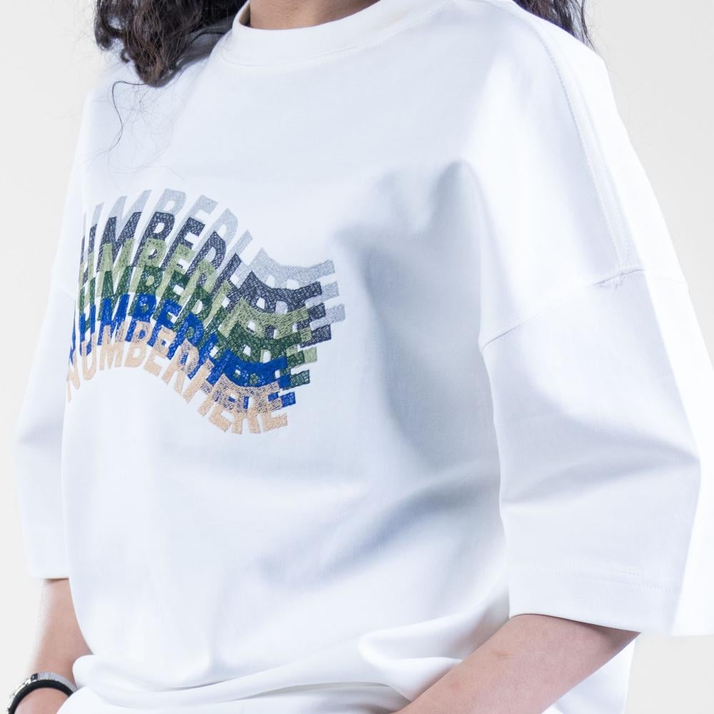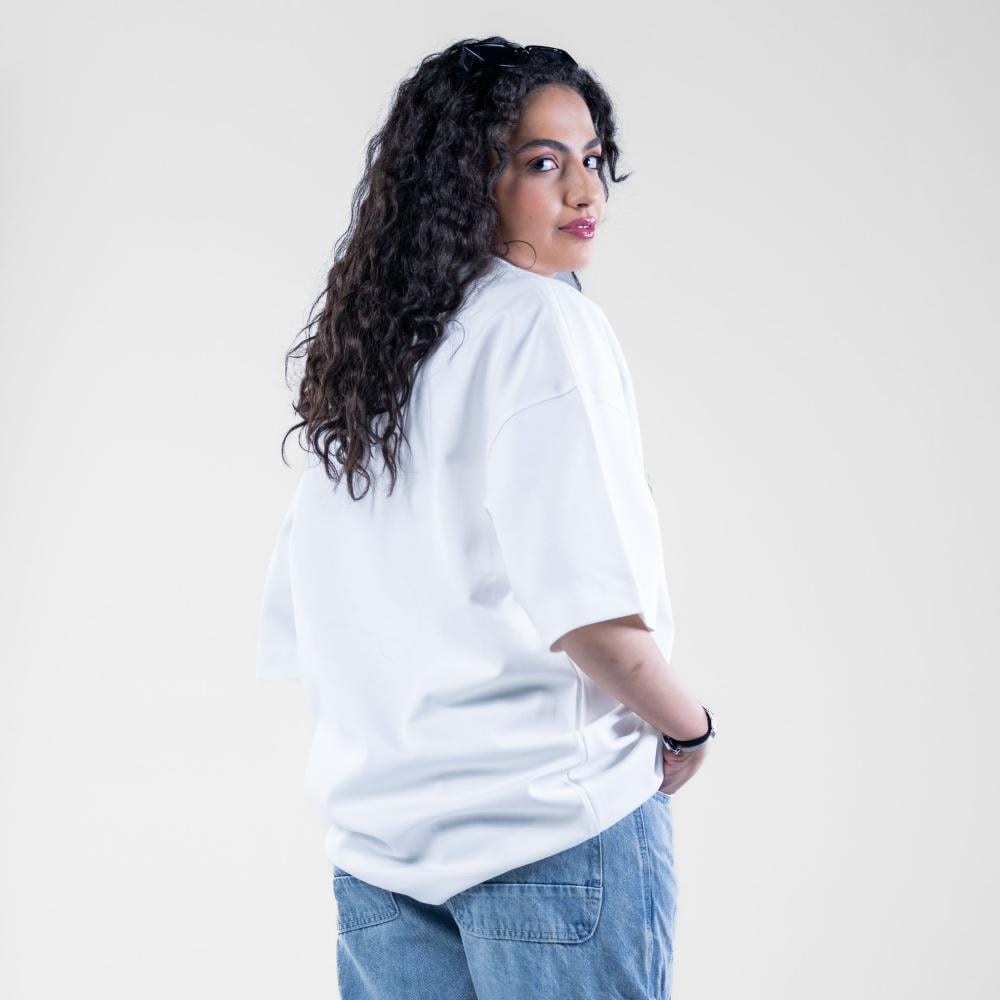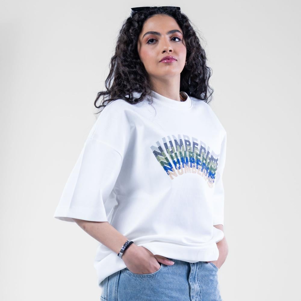 تيشيرت قطن اوفرسايز كاجوال بطبعة امامية فريدة - ابيض