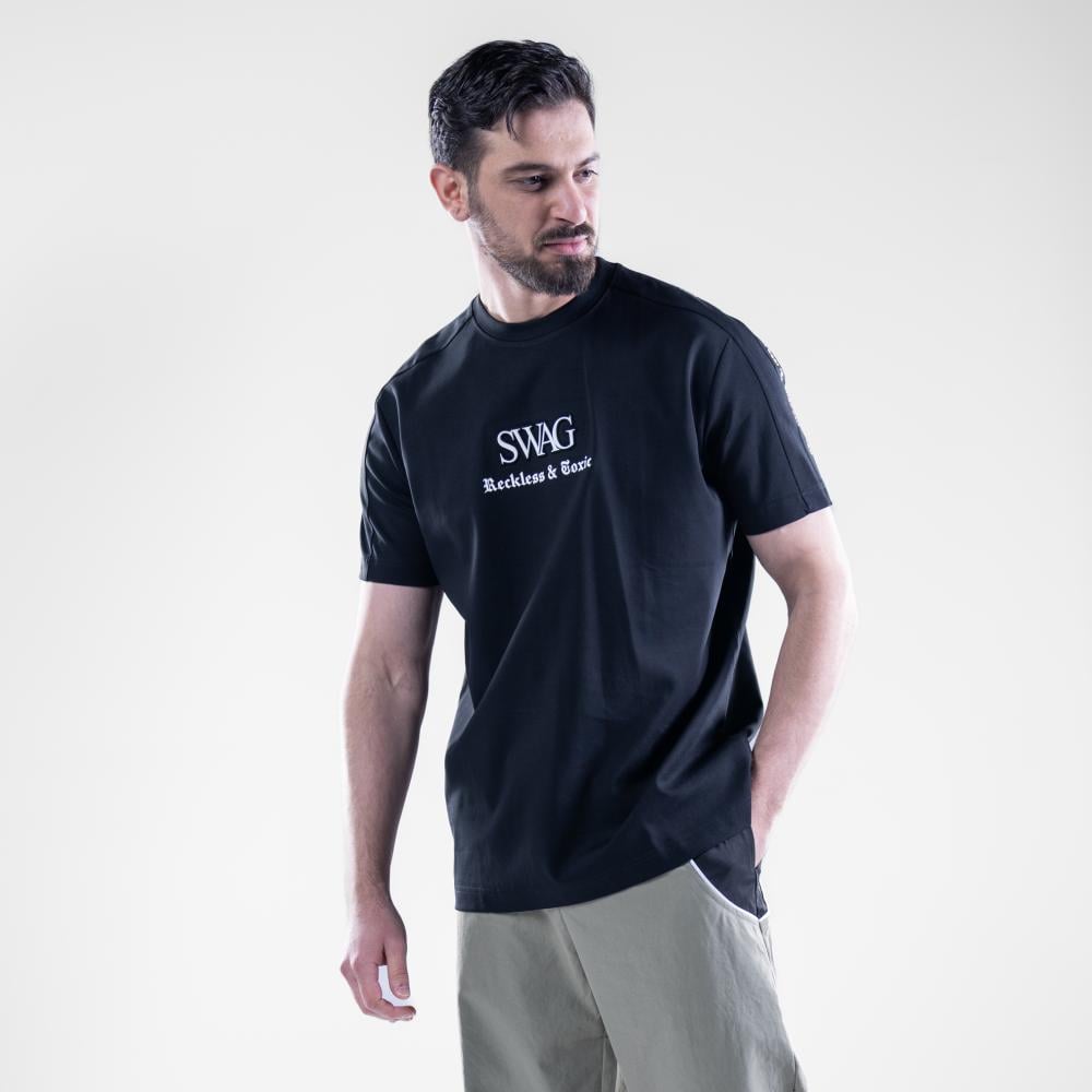 تيشيرت قصه بسيطه بطبعه سواج - اسود