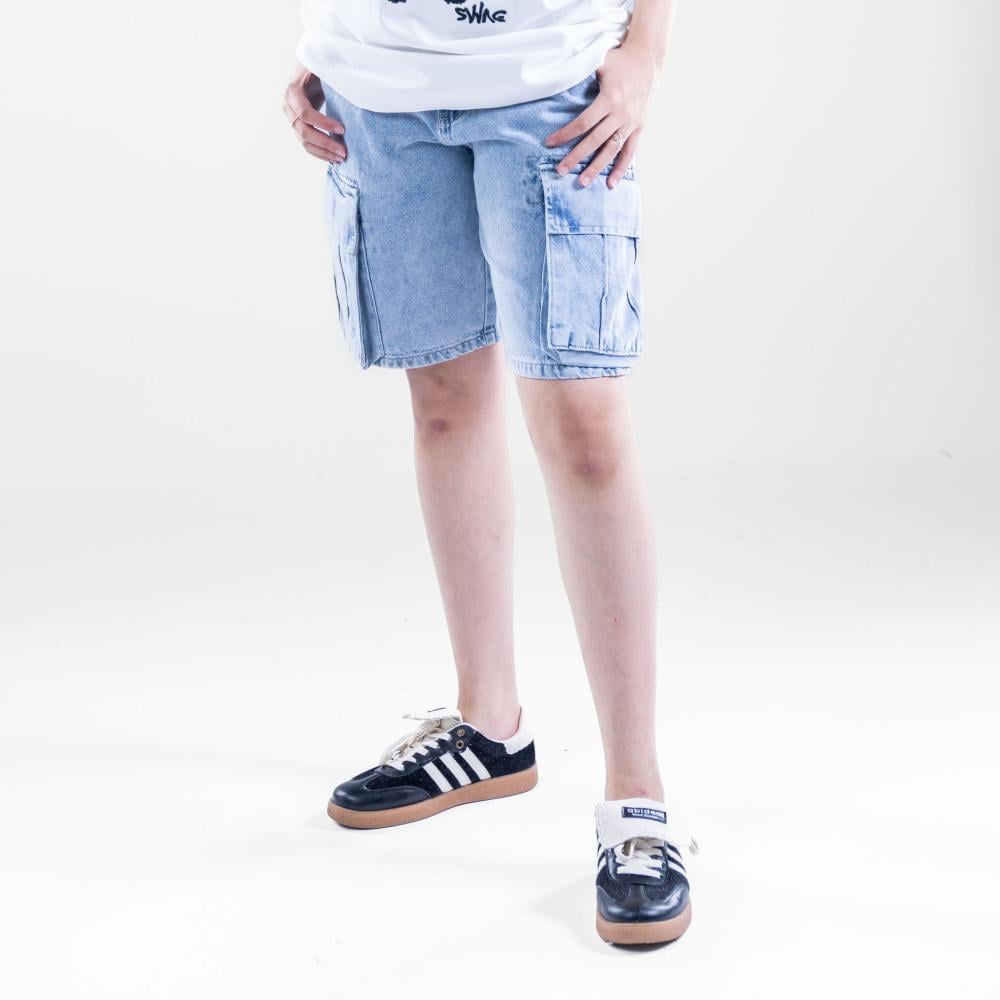 شورت كارجو جينز بألوان زاهية وجيوب متعددة - ازرق فاتح