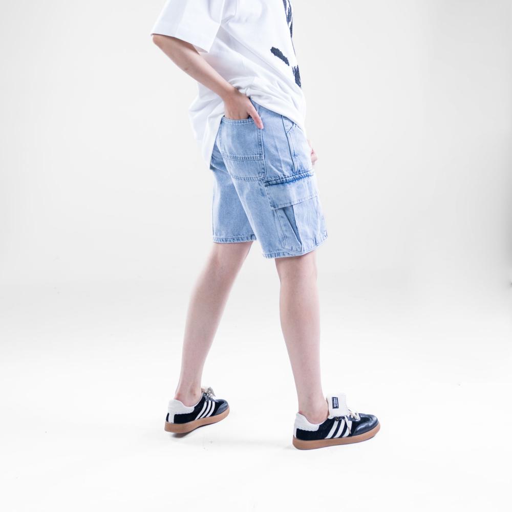 تميز بإطلالة صيفية مريحة وأنيقة في نفس الوقت مع هذا الشورت الرائع الذي يأتي بتصميم الكارجو من الجينز المتين، لضمان بقائه معك لسنوات طويلة من الزمن، مع مقاسات متنوعة تناسب كل الأحجام، يأتي باللون الأزرق والسماوي الذي يضفي لمسة من الأناقة على مظهرك، لذلك فهو خيار مثالي للظهور بمظهر فريد في أوقاتك المختلفة.