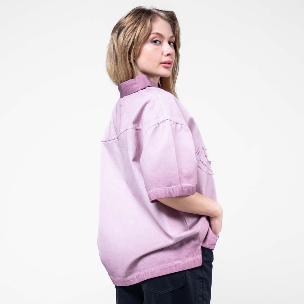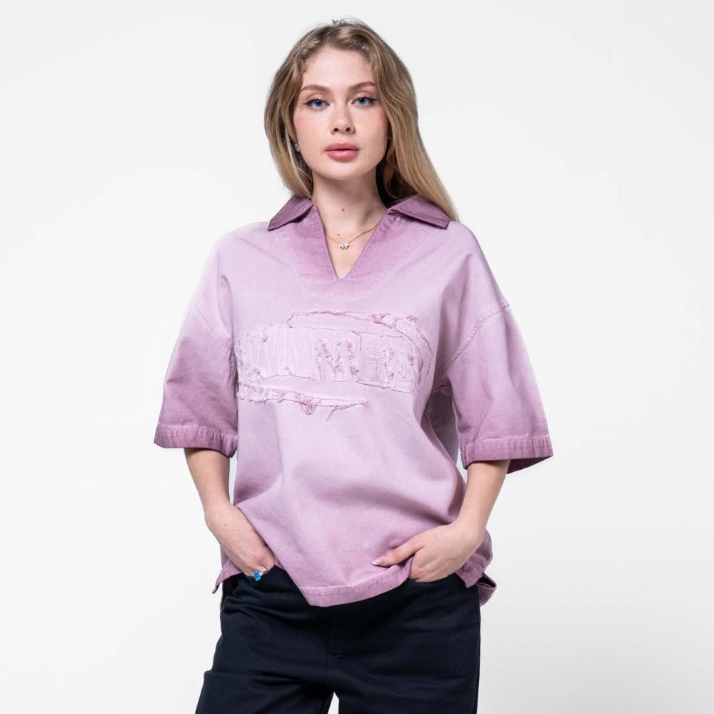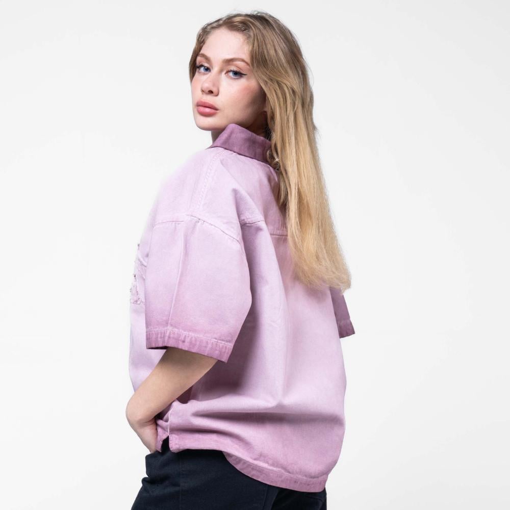 قميص الوان مدرجه وكتابه اماميه بارزة نص كم - بنفسجي