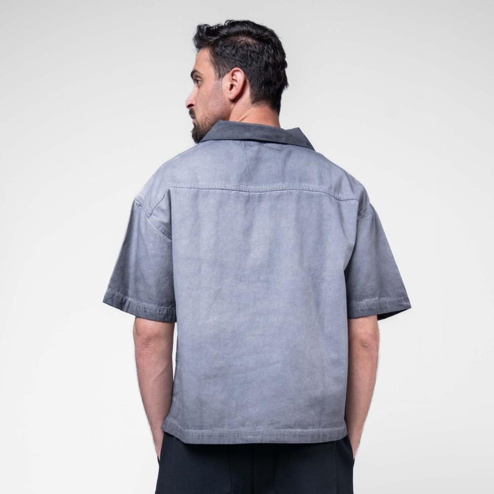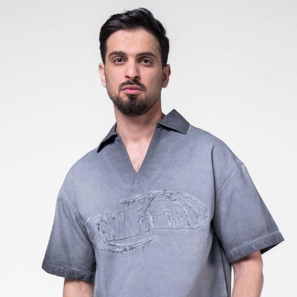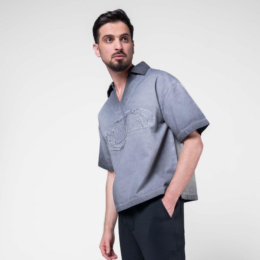 قميص الوان مدرجه وكتابه اماميه بارزة نص كم - رمادي
