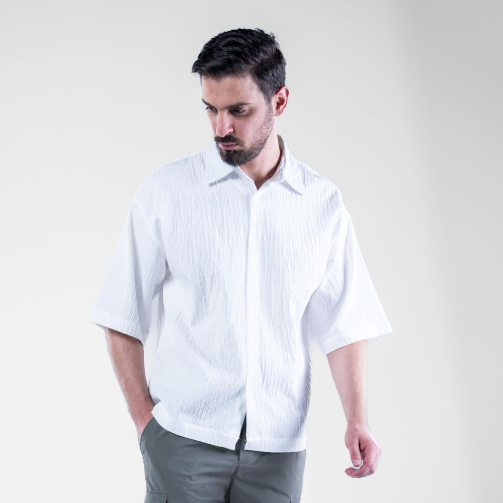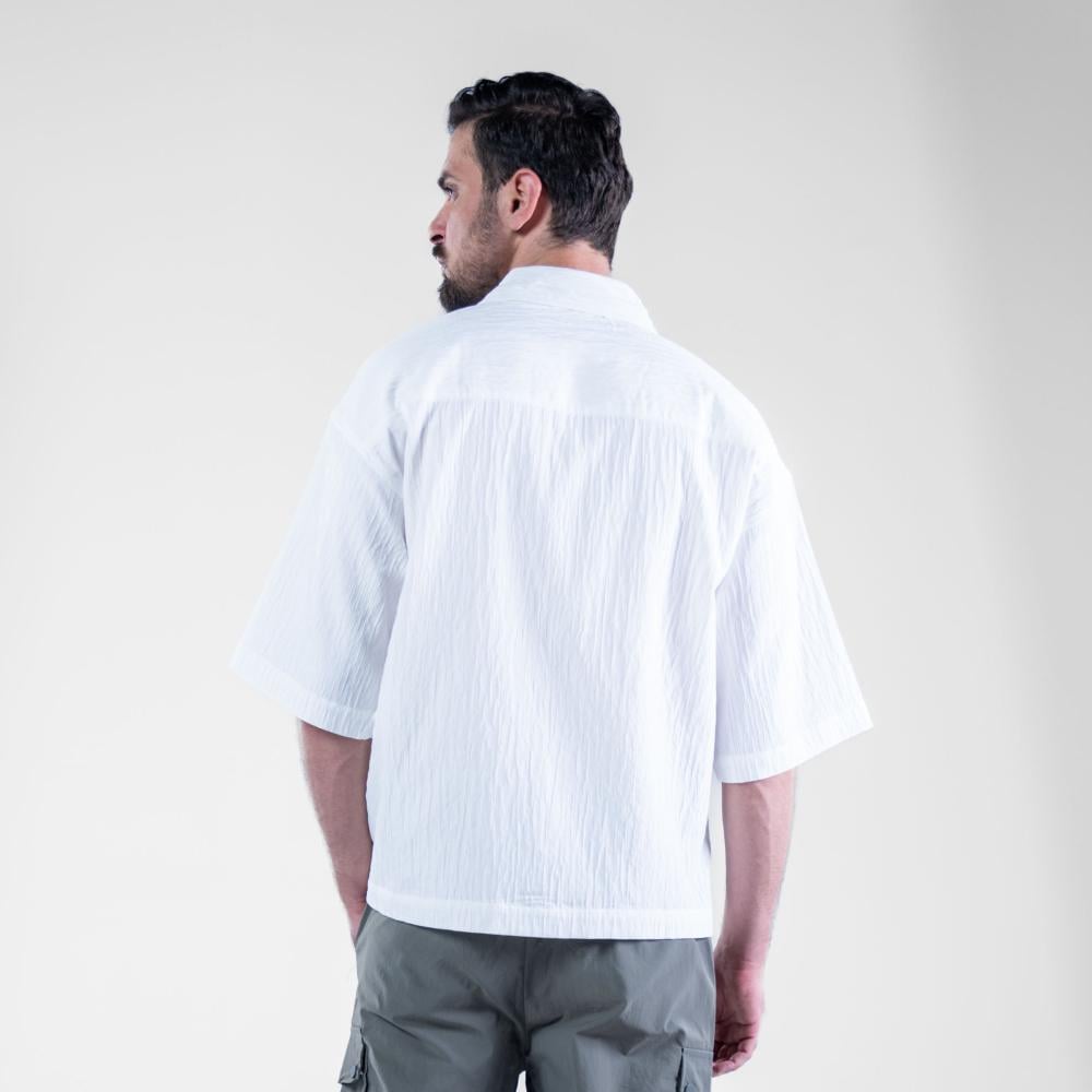 قميص اوفرسايز بوليستر باكمام قصيرة مميز وراقى - ابيض