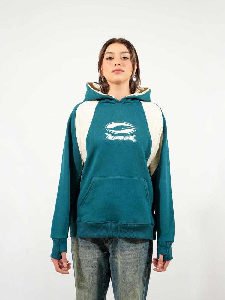 هودي أنيق بجوانب ملونه مع قصة الاصبع - تركواز