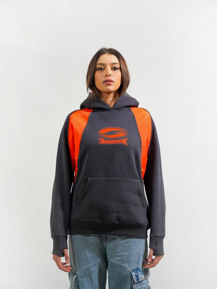 هودي أنيق بجوانب ملونه مع قصة الاصبع - رمادي