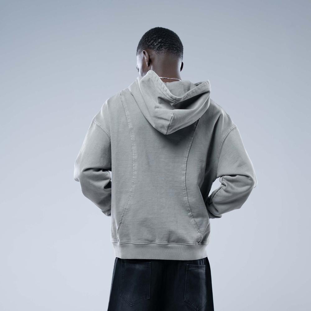 هودي اوفرسايز بسحاب عند فتحة الرقبة وجيبين منفصلين مع حرفين تطريز RY - رمادي داكن
