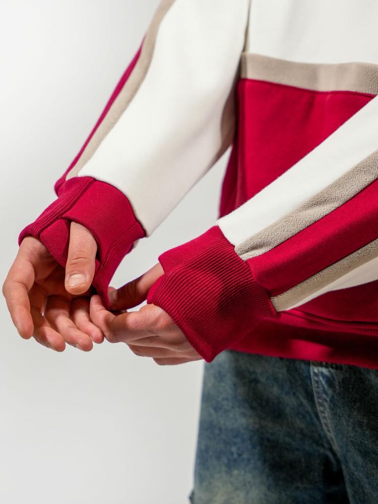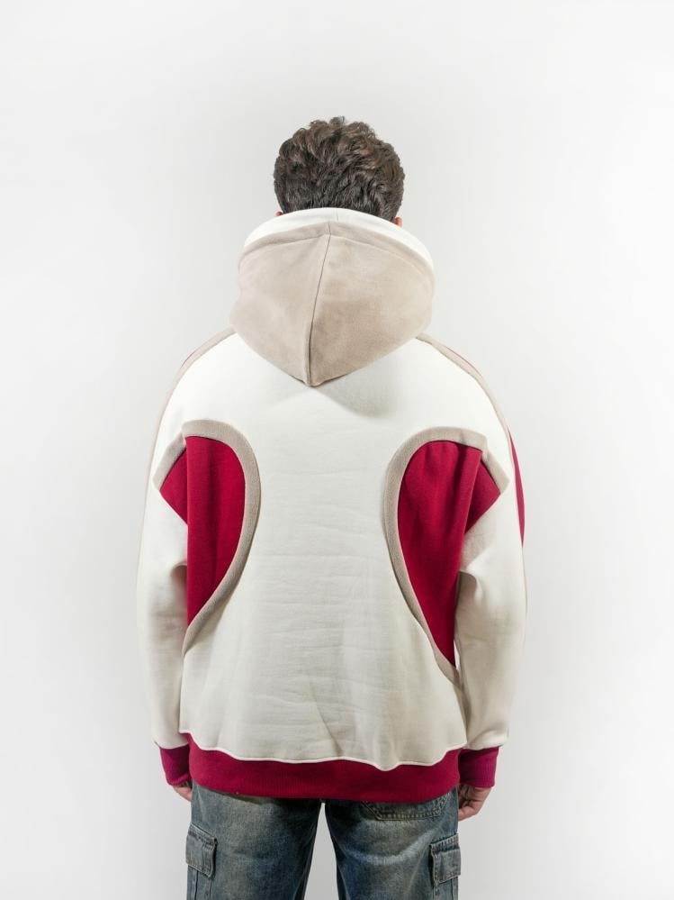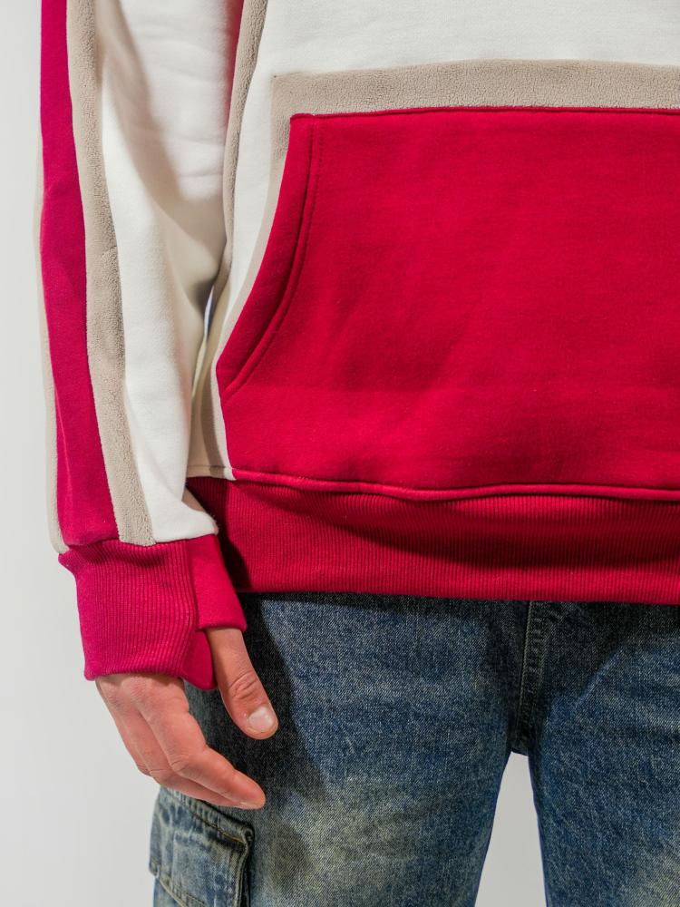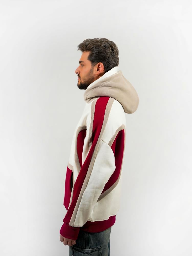 هودي بخطوط مميزة ملونة - ابيض - احمر