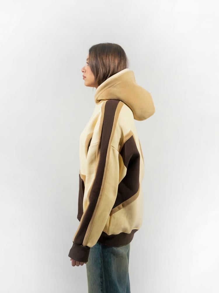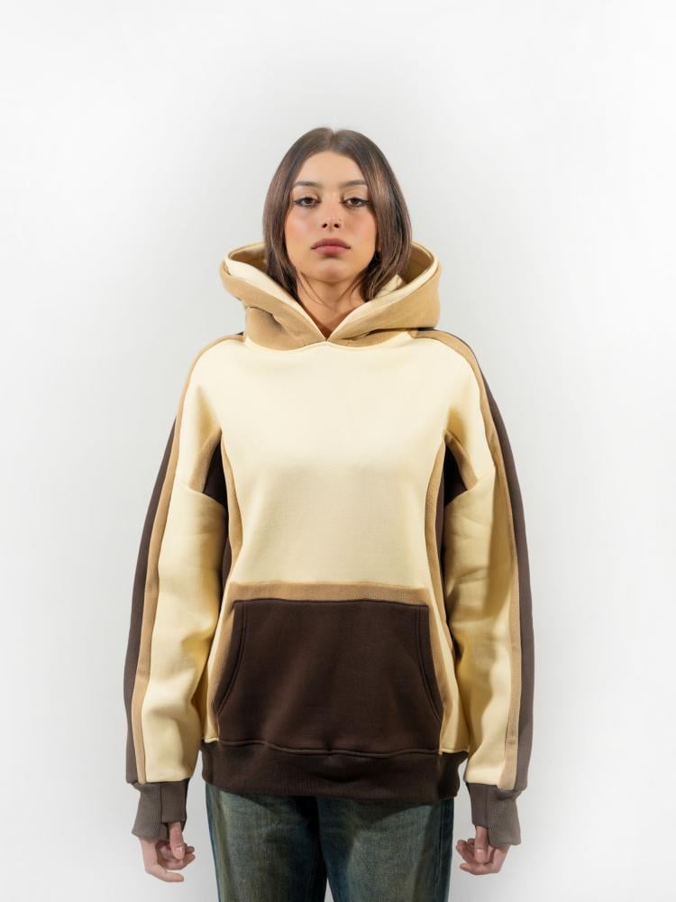 هودي بخطوط مميزة ملونة  - سكري - بني