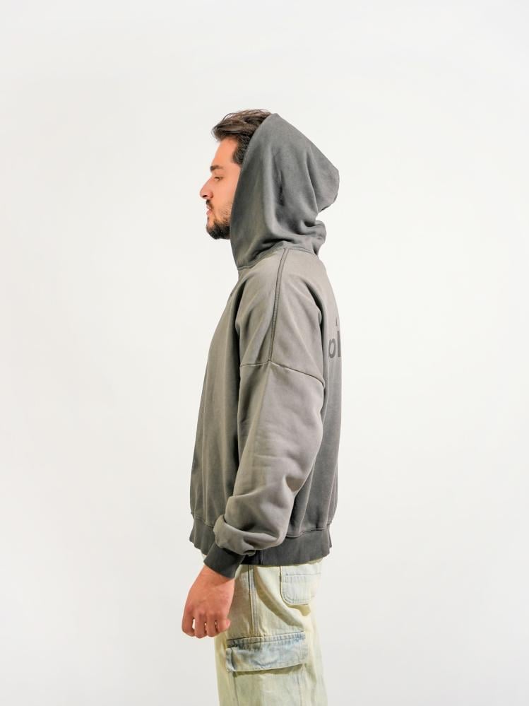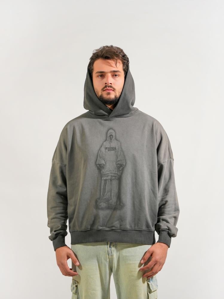 هودي برسمة أماميه وطباعه خلفية مميزه - رصاصي غامق