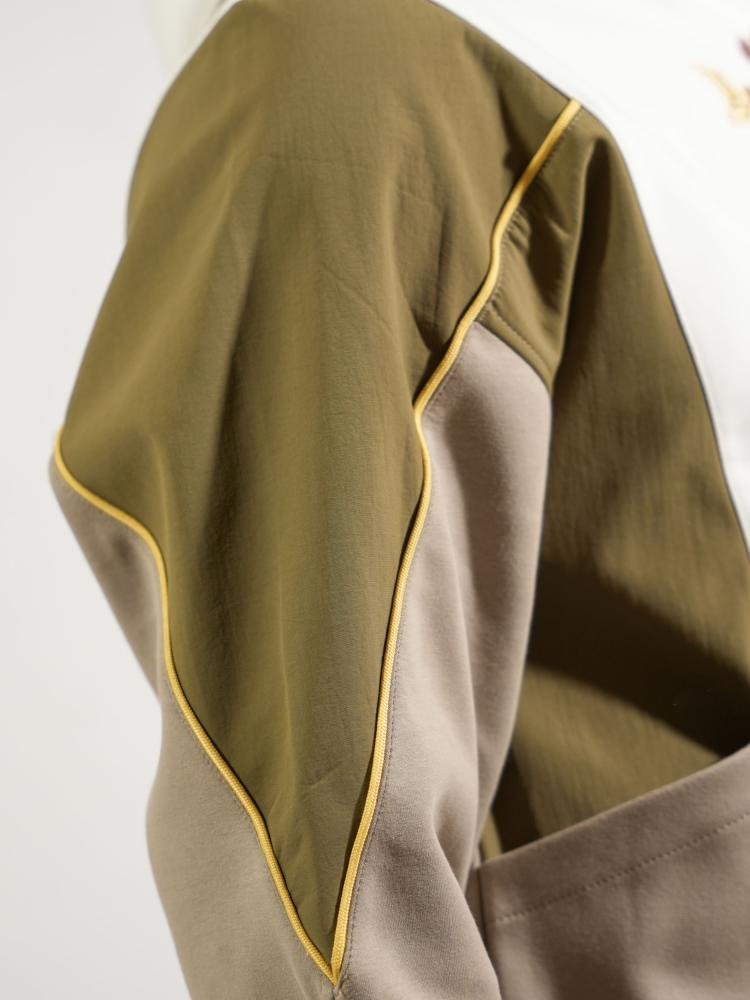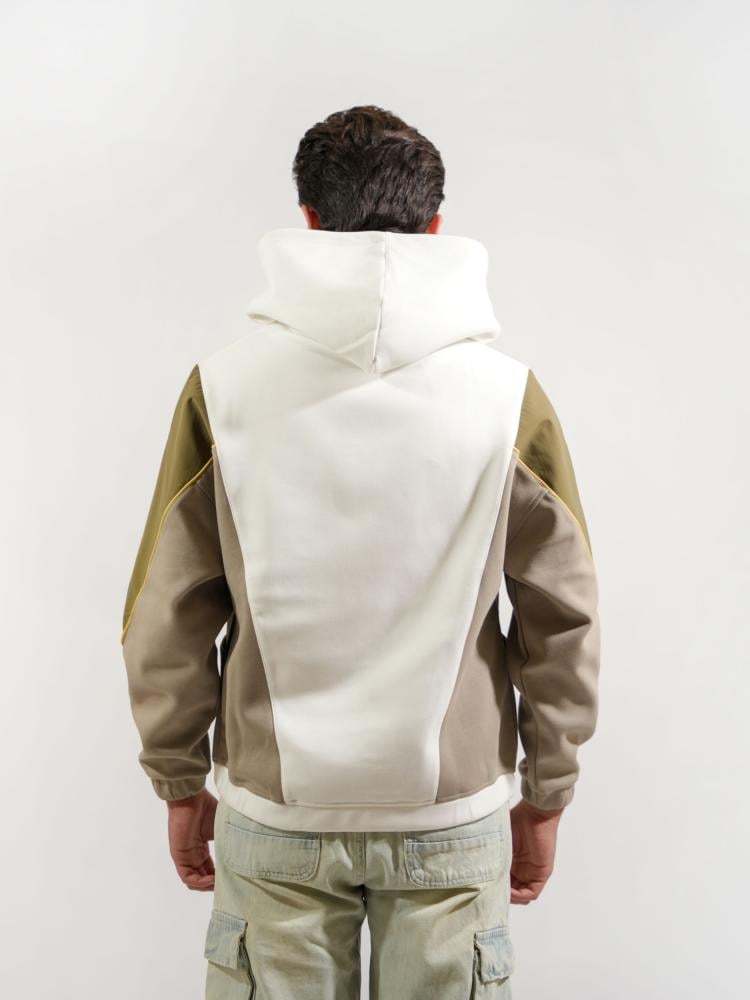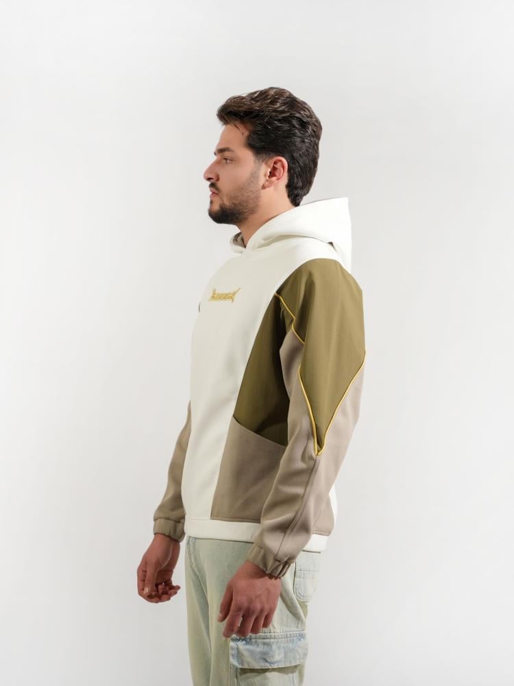 هودي بطبعه أمامية وجيوب جانبية ملونة - ابيض