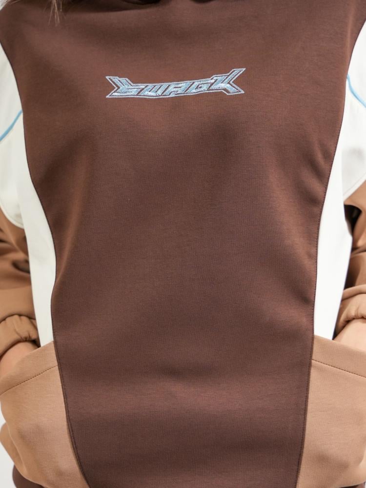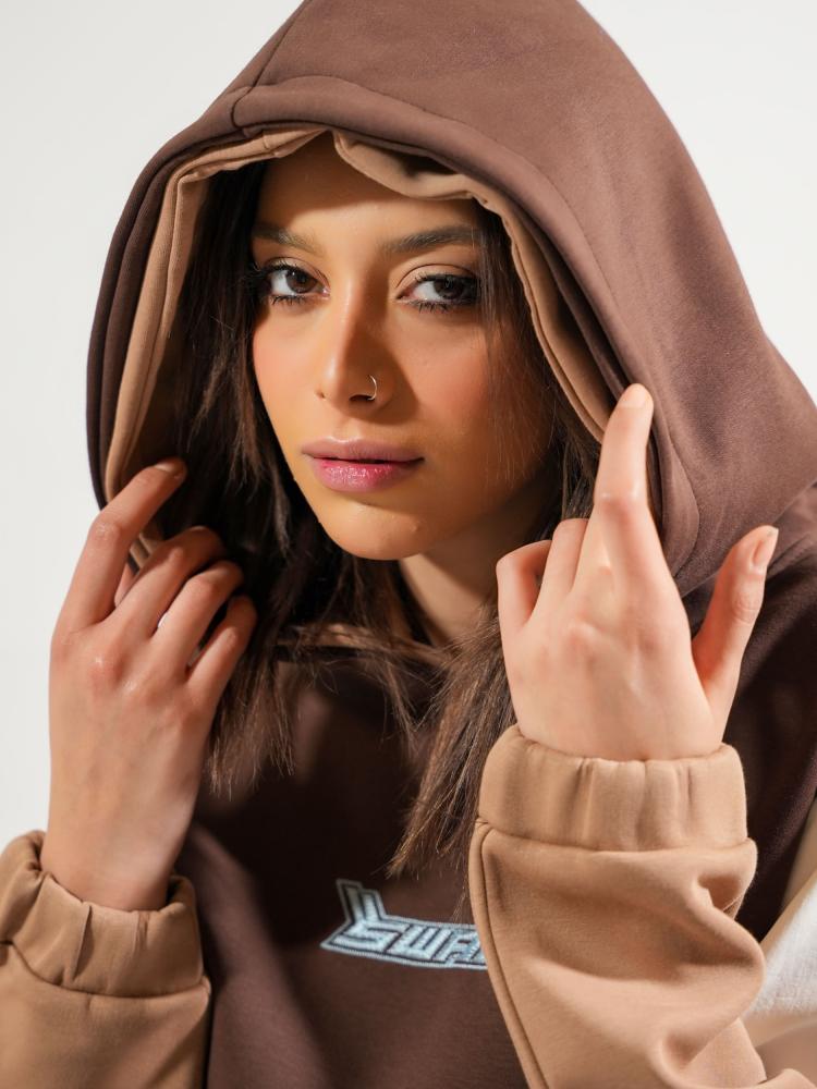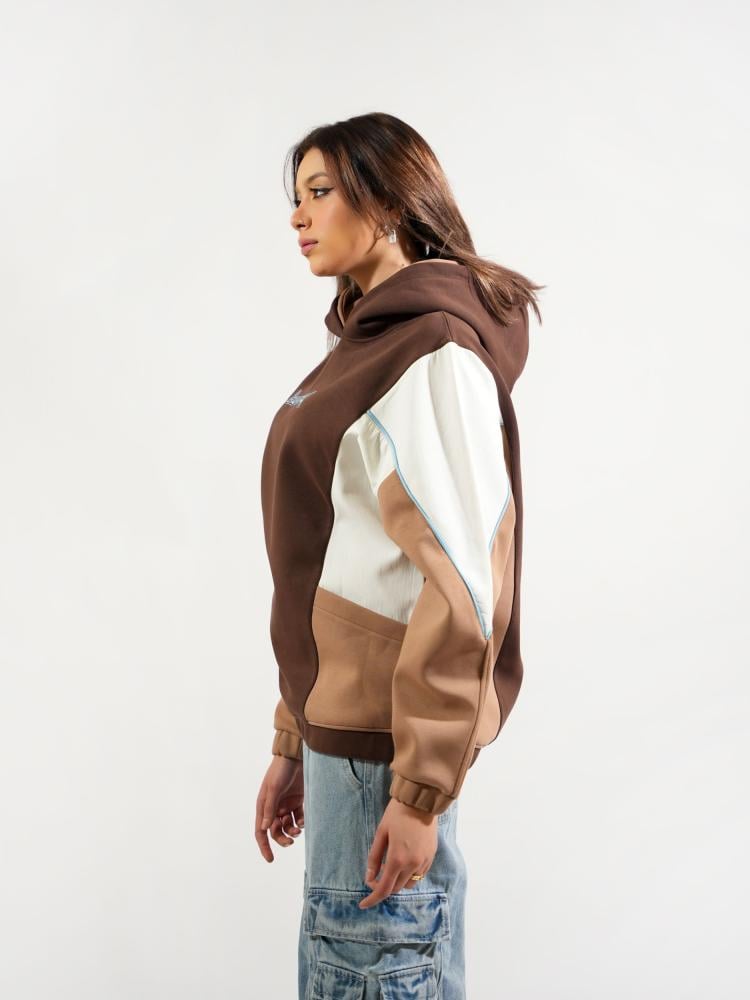 هودي بطبعه أمامية وجيوب جانبية ملونة - بني