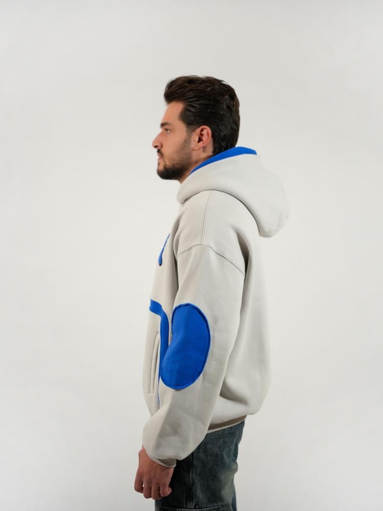 هودي بلونين مع تطريز امامي وجيوب  - رمادي فاتح