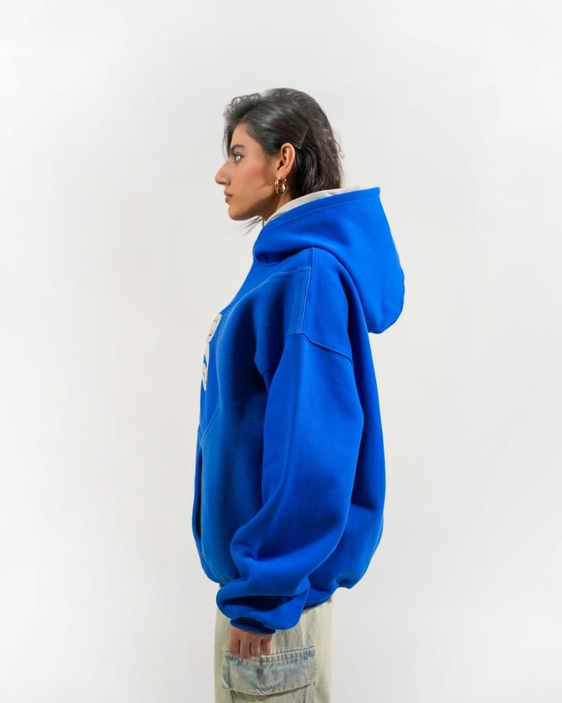 هودي شتوي سميك بطبعه وقبعه ملونه  - أزرق