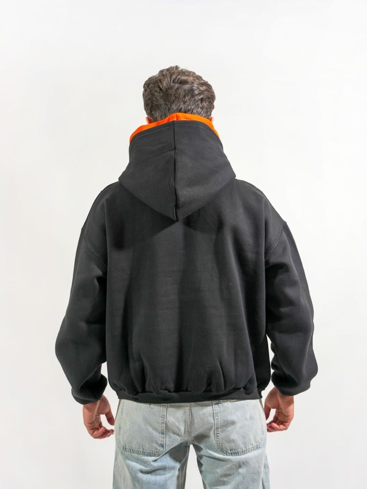 هودي شتوي سميك بطبعه وقبعه ملونه - اسود