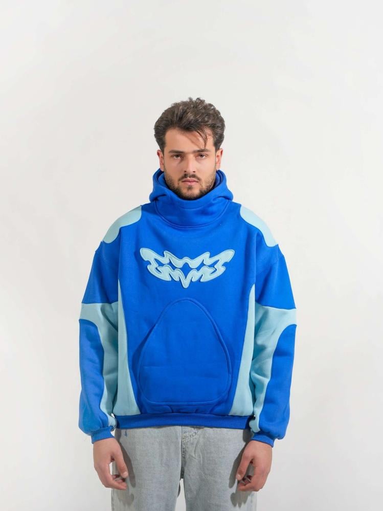 هودي شتوي سميك ملون من الجوانب - ازرق
