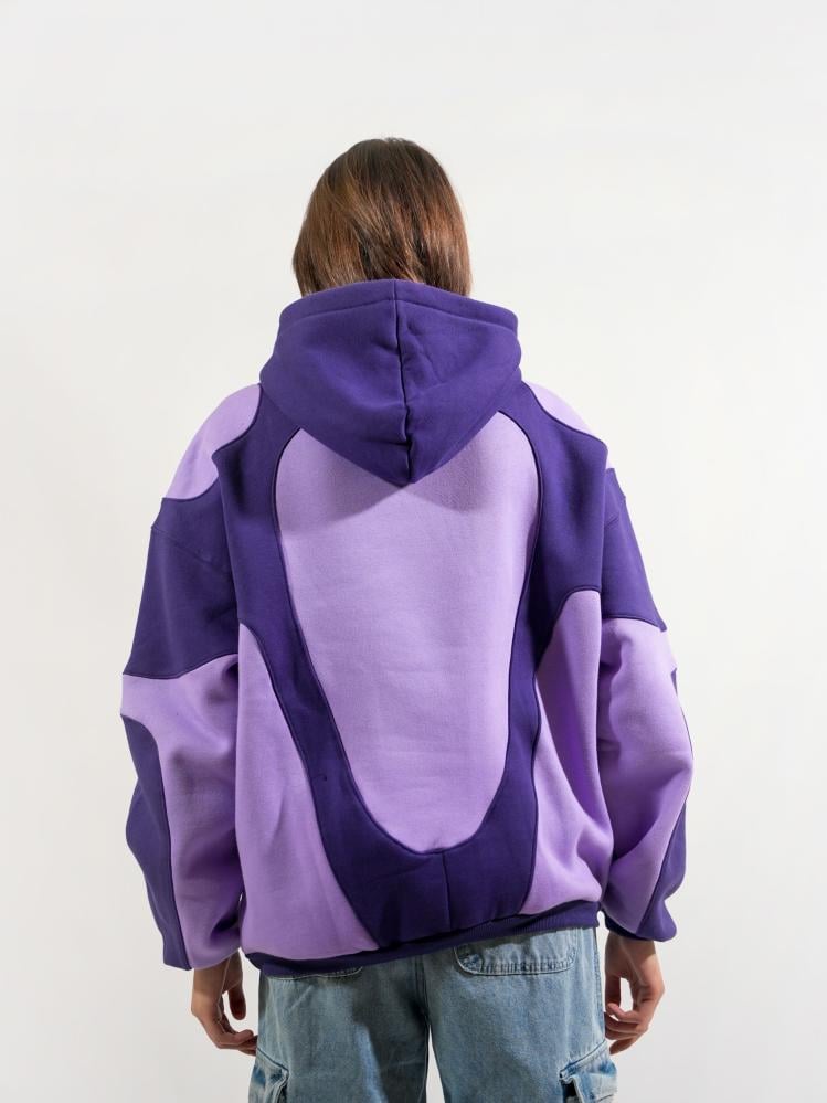هودي شتوي سميك ملون من الجوانب - بنفسجي