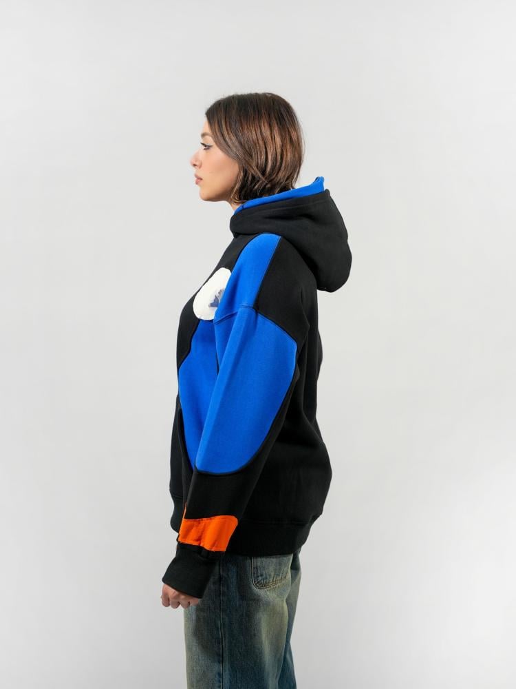هودي مميز بألوان متعددة مع قصة الاصبع - اسود