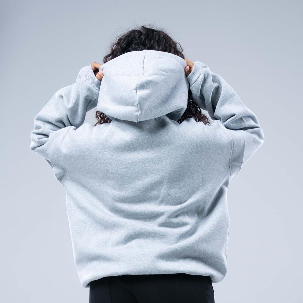 هودي واسع بكاب وطباعة سوداء حادة - رمادي