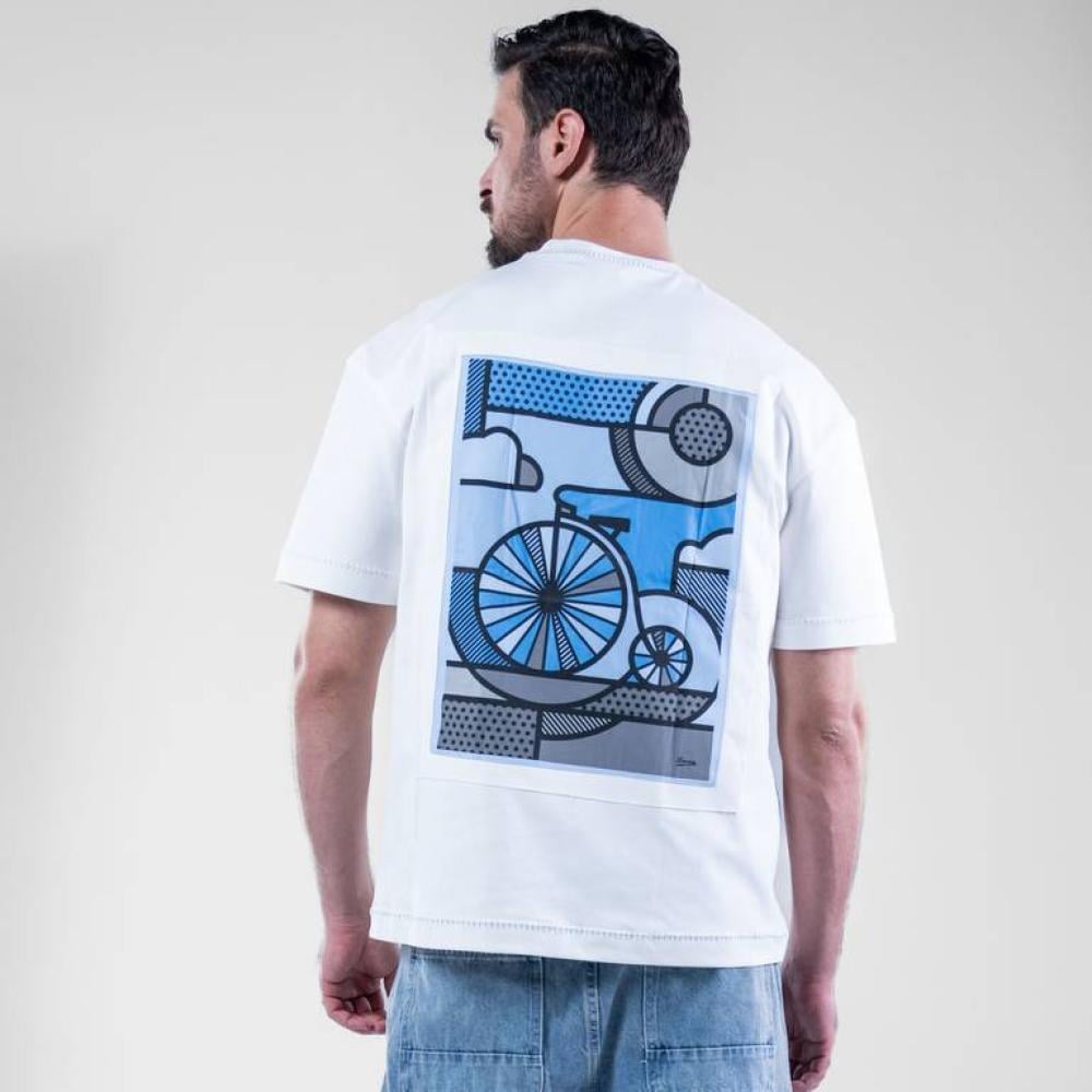 تيشيرت اوفرسايز خامه طبيه بطبعه خلفيه كبيرة - ابيض