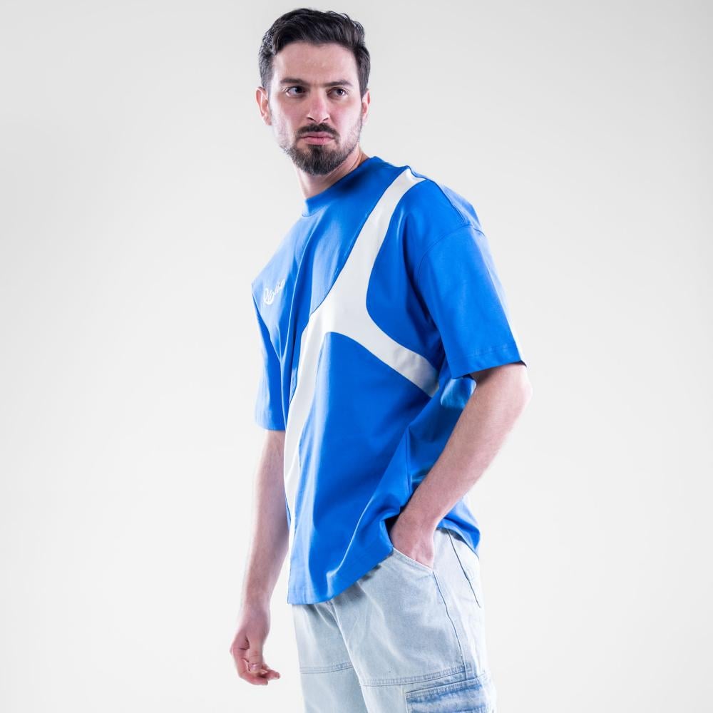 تيشيرت اوفر سايز أكمام قصيرة خامه طبيه بطبعة خلفيه كبيرة - ازرق