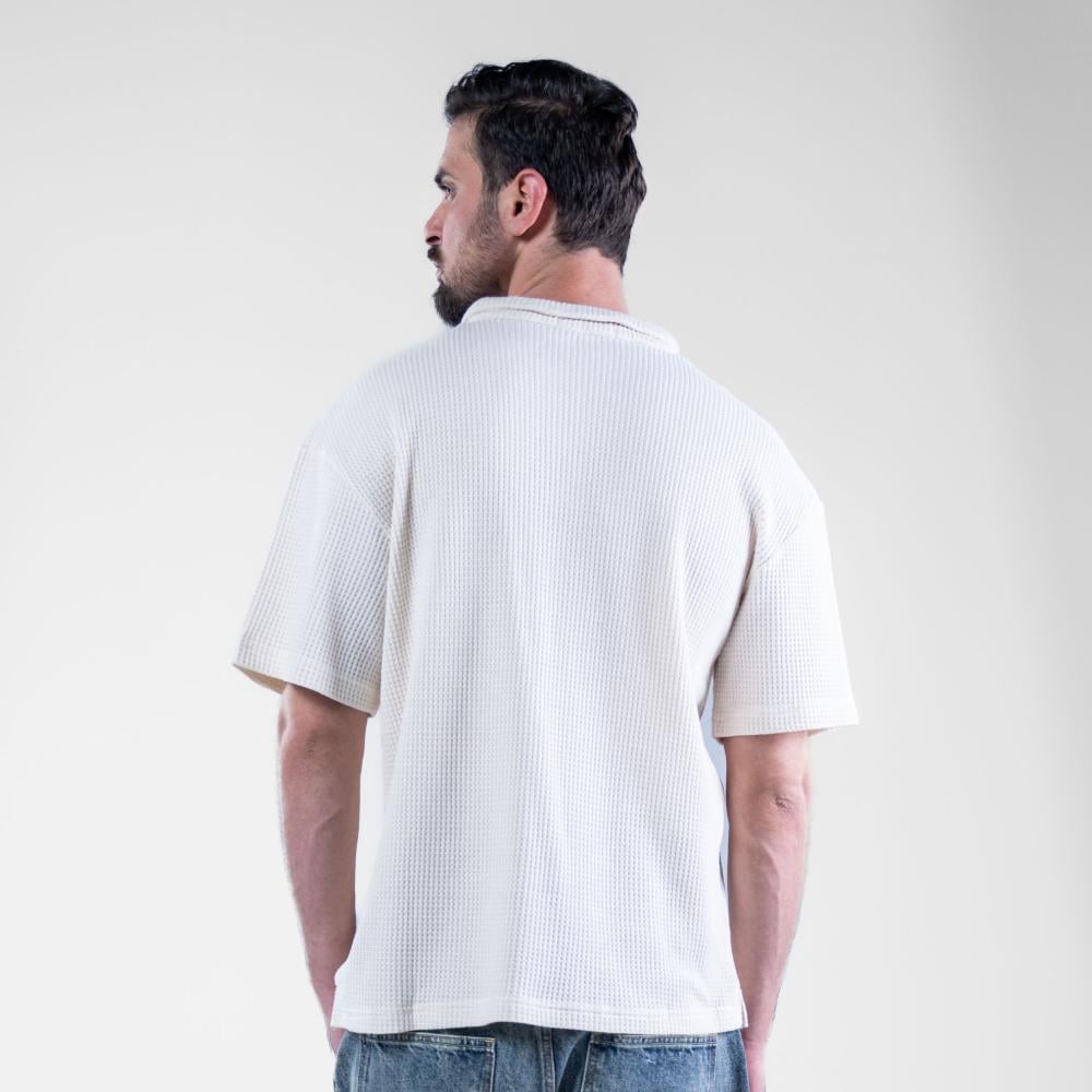تيشيرت بولو اوفر سايز مخرم بالوان متعدده - بيج